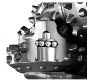 Three side nozzles and one center nozzles of the tricone bit can increase capacity of deaning hole,expedite upward flow of drilling cuttings.